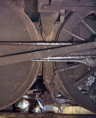 Jack Delano,  December 1942. "Worker inspecting a locomotive on a pit in the roundhouse at the Chicago & North Western RR's Proviso Yard."